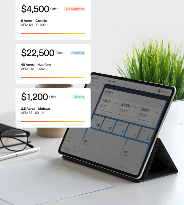 Replace multiple broken tools with Acrematic, the only platform designed to make your land investing team faster and happier.