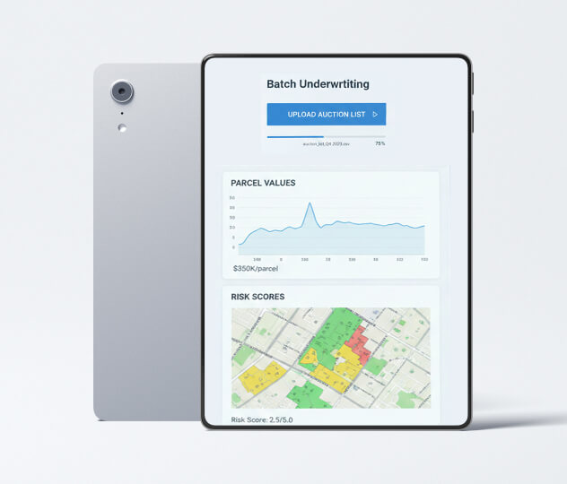 Upload your auction list. Get values and risk scores for every parcel in minutes.